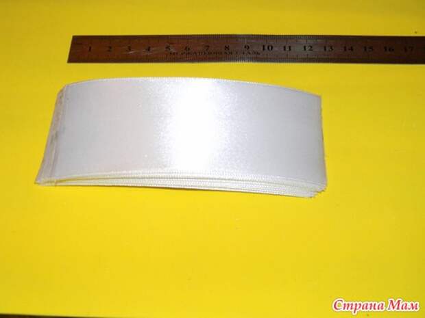 Нам потребуется лента шириной 5 см, клей я использую момент кристалл, нитки под цвет ленты, иголка,