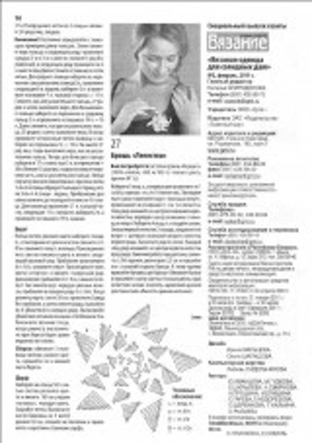 В качестве модного дополнения к одежде журнал предлагает красивые вязаные аксессуары: шляпку, палантин, берет, шарф, перчатки и брошь.