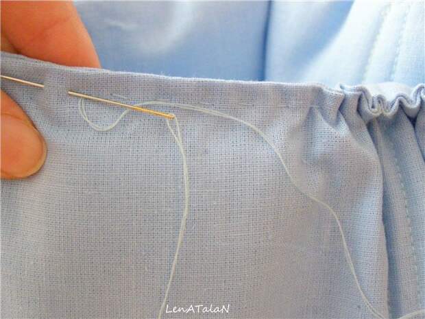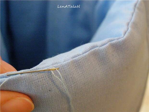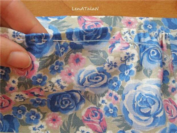 Теперь подгибаем верх и собираем его на руках мелкими стежками.