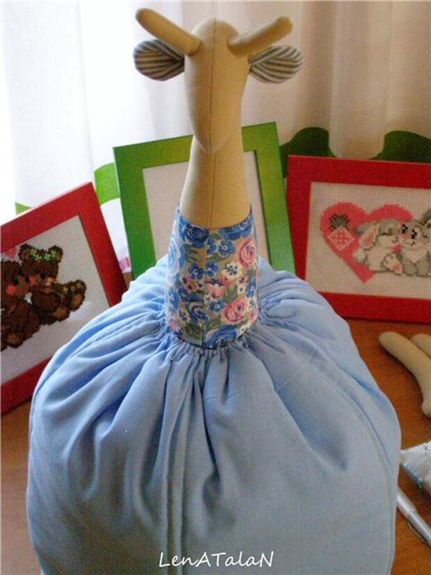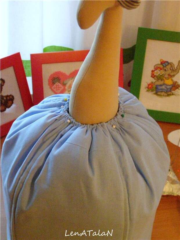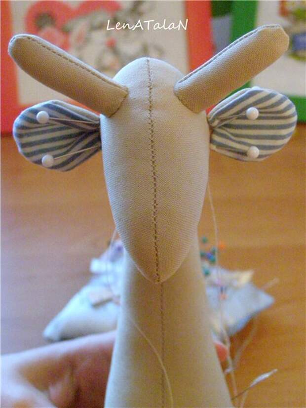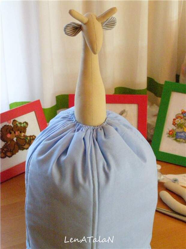 Надеваем на жирафу, фиксируем английскими булавками.