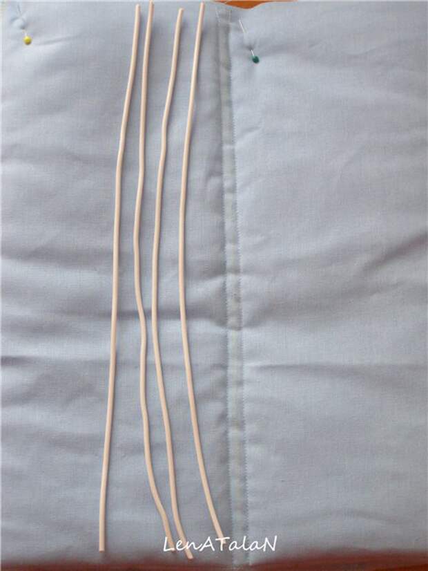 Простегиваем, делая по две строчки (это кармашки для проволоки),шириной около 0,8 см.