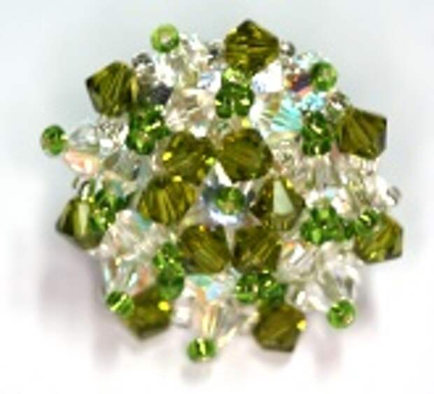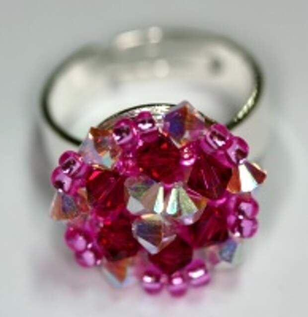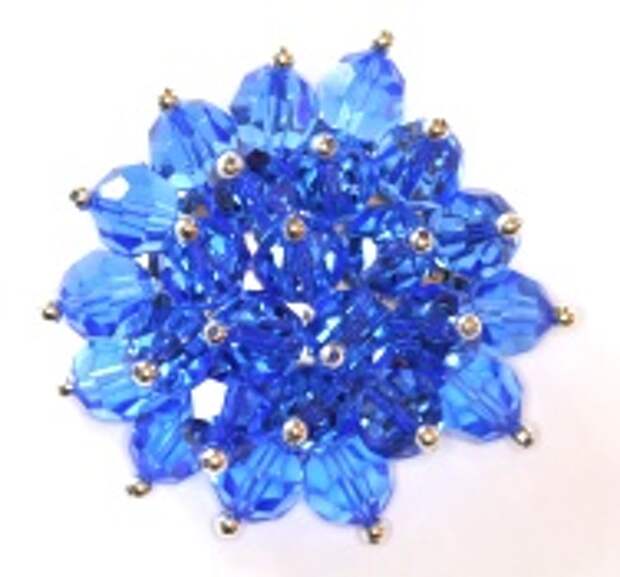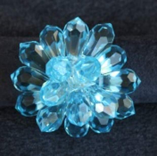 Si queremos decorar una regadera con drops u otras cuentas con el agujero arriba es más fácil aún porque sólo tenemos que coserlas directamente, no tenemos que usar topes para la parte de arriba. A continuación se puede ver un anillo con regadera de 15 mm con 18 drops 6000 de cristal Swarovski color aguamarina.