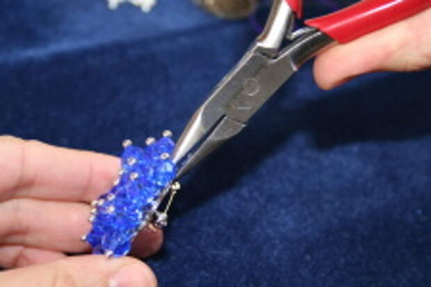 - Cuando terminamos de llenar la regadera la fijamos sobre el broche apretando las patillas del broche con la tenaza de punta lisa.