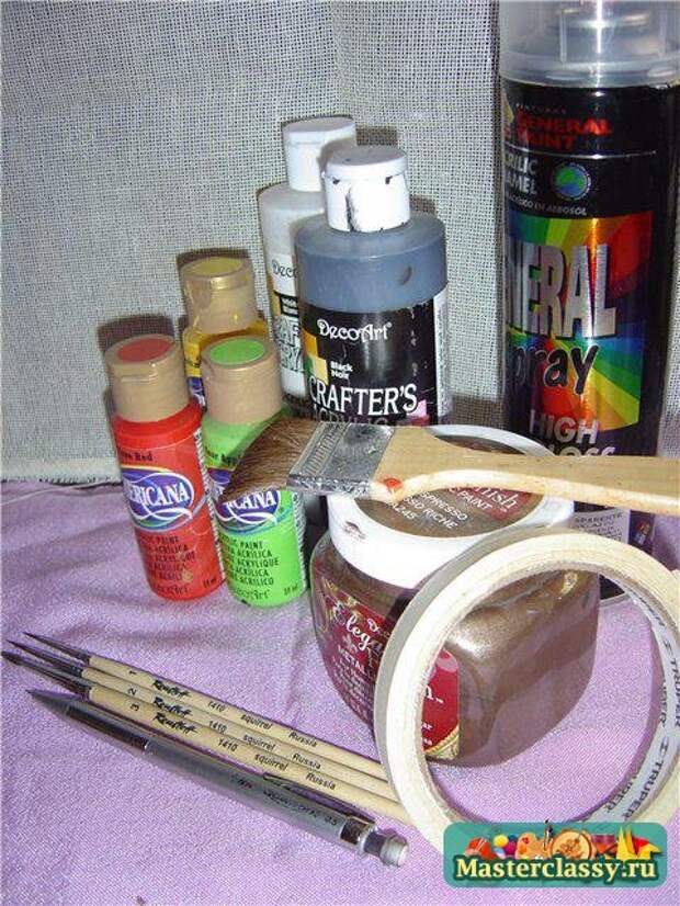 - акриловые краски по дереву, которые можно приобрести в любом художественном салоне;